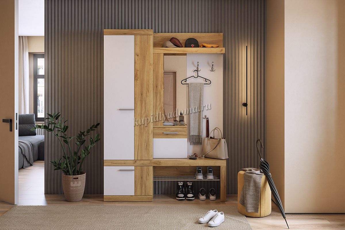 Прихожая Алекс (Дуб крафт золотой/Белое дерево)