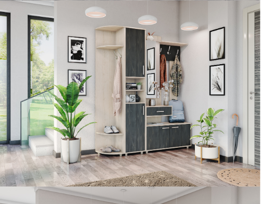 Для изготовления модулей прихожей «Граф», производитель использует ЛДСП, прошедшее несколько проверок качества, фурнитуру от европейских производителей.