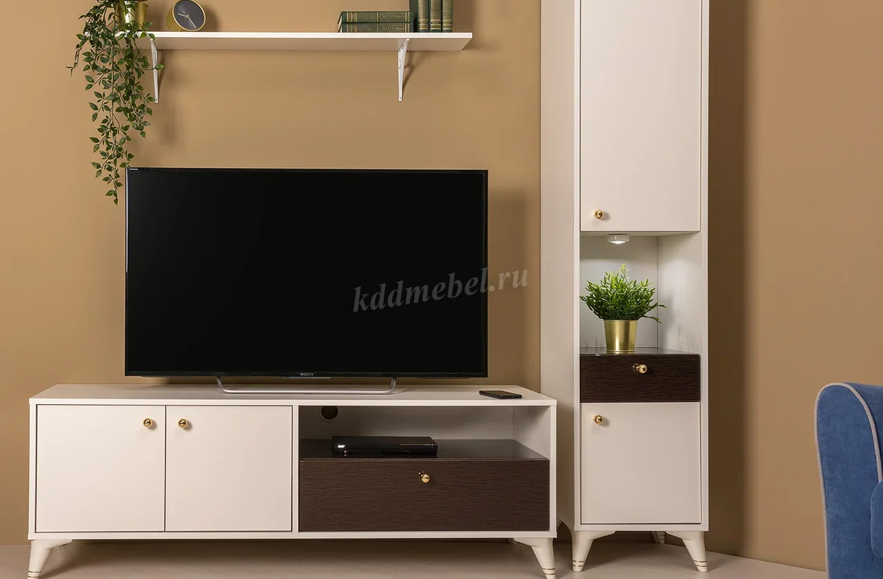 Мягкая и приятная цветовая гамма привлекут вас и ваших гостей своей утонченностью: шоколадный оттенок глянцевого дерева с золотистым отблеском "заиграет" при любом освещении, а в сочетании с точечной подсветкой и "золотыми" ручками придаст вашему дому изысканный и легкий образ.