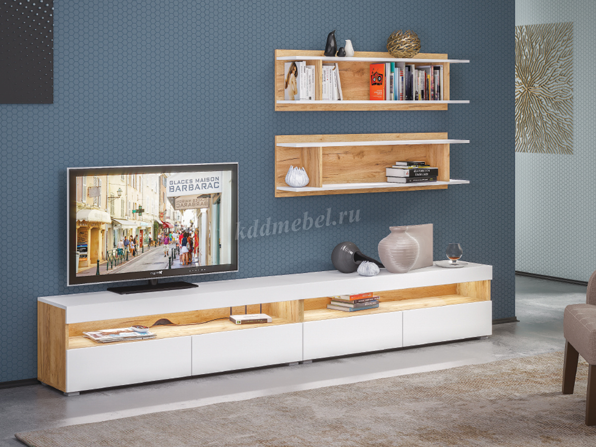 Полка навесная Альба (Дуб крафт золотой/Белый) наличие товара: