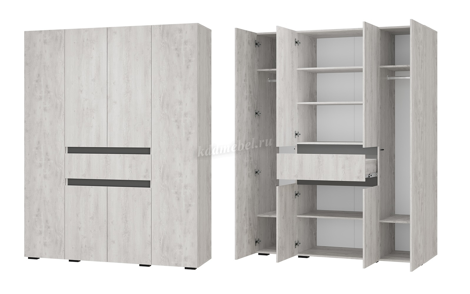 Шкаф Мрия 4-х створчатый (Бетон пайн светлый/Графит) наличие товара: