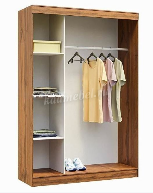Удобный и вместительный шкаф-купе «Бостон» имеет надёжную конструкцию и современный дизайн. Левая часть шкафа оборудована нишей с тремя полками. Справа – отделение горизонтальной штангой для одежды.